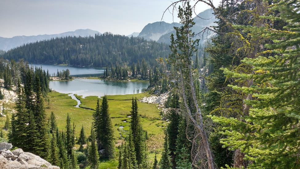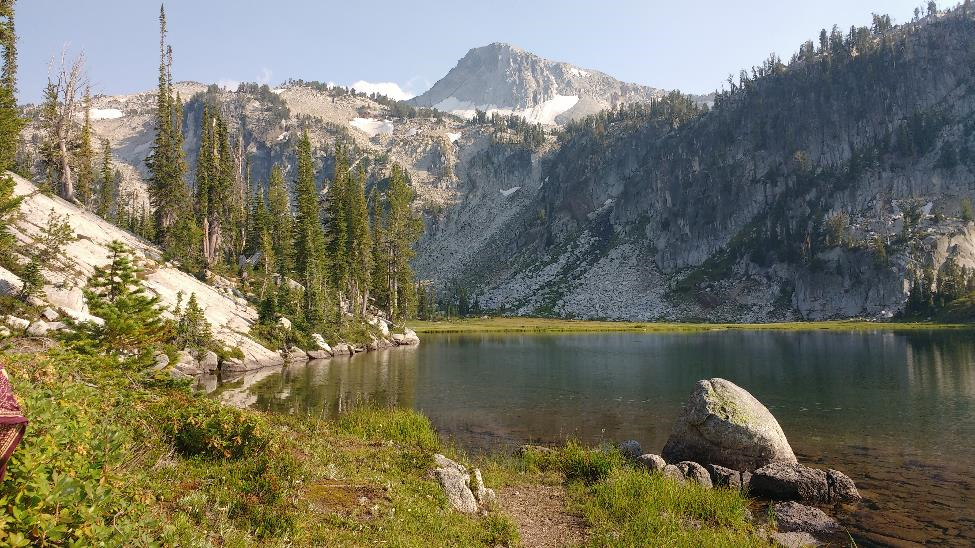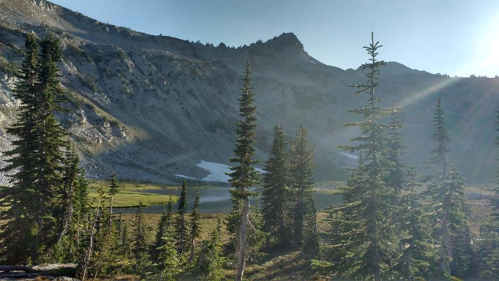 After breakfast the next morning we decided to hike to Eagle Cap, but I aborted the trip partway up. Not because of physical limitations—my knees were holding up okay!—but because of haze. While the previous night had been clear, a northerly wind was blowing a haze up the valley, and already I could see that the views from the top would be obscured.
